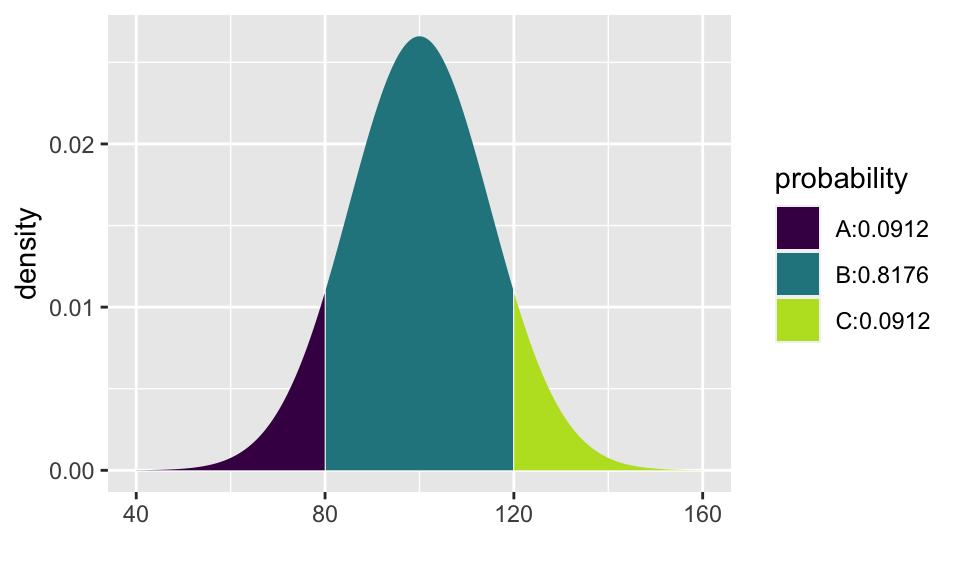## P(X > 80) = P(Z > -1.333) = 0.90879 P(X > 120) = P(Z > 1.333) = 0.09121