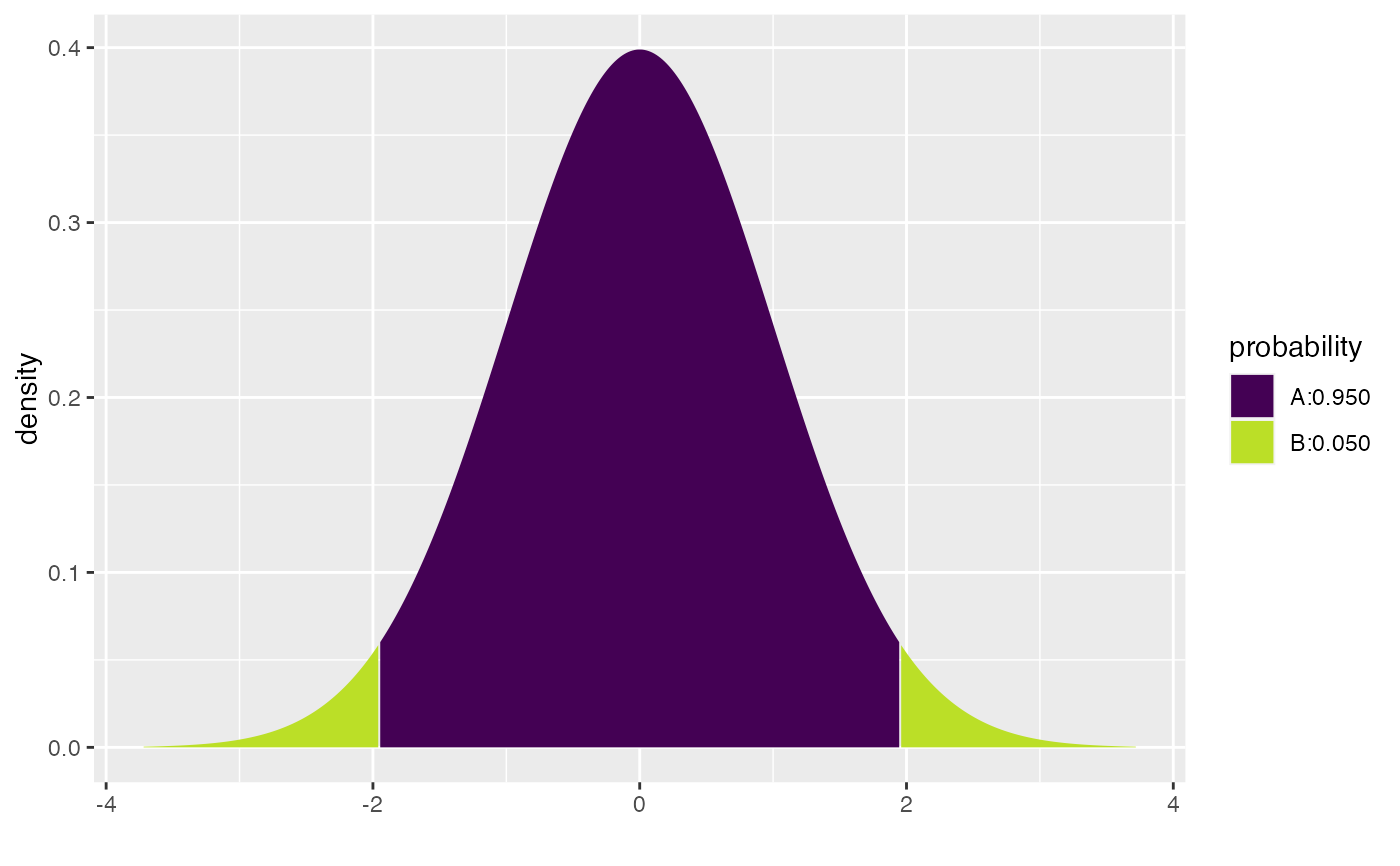 cdist("t", p = 0.95, df=22, verbose = TRUE)