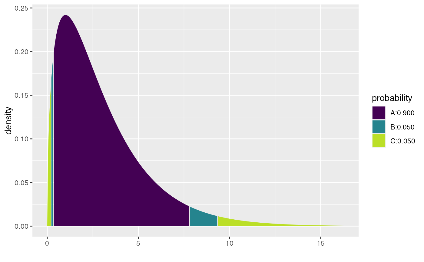This function determines the critical values for isolating a central portion of a distribution with a specified probability. This is designed to work especially well for symmetric distributions, but it can be used with any distribution.