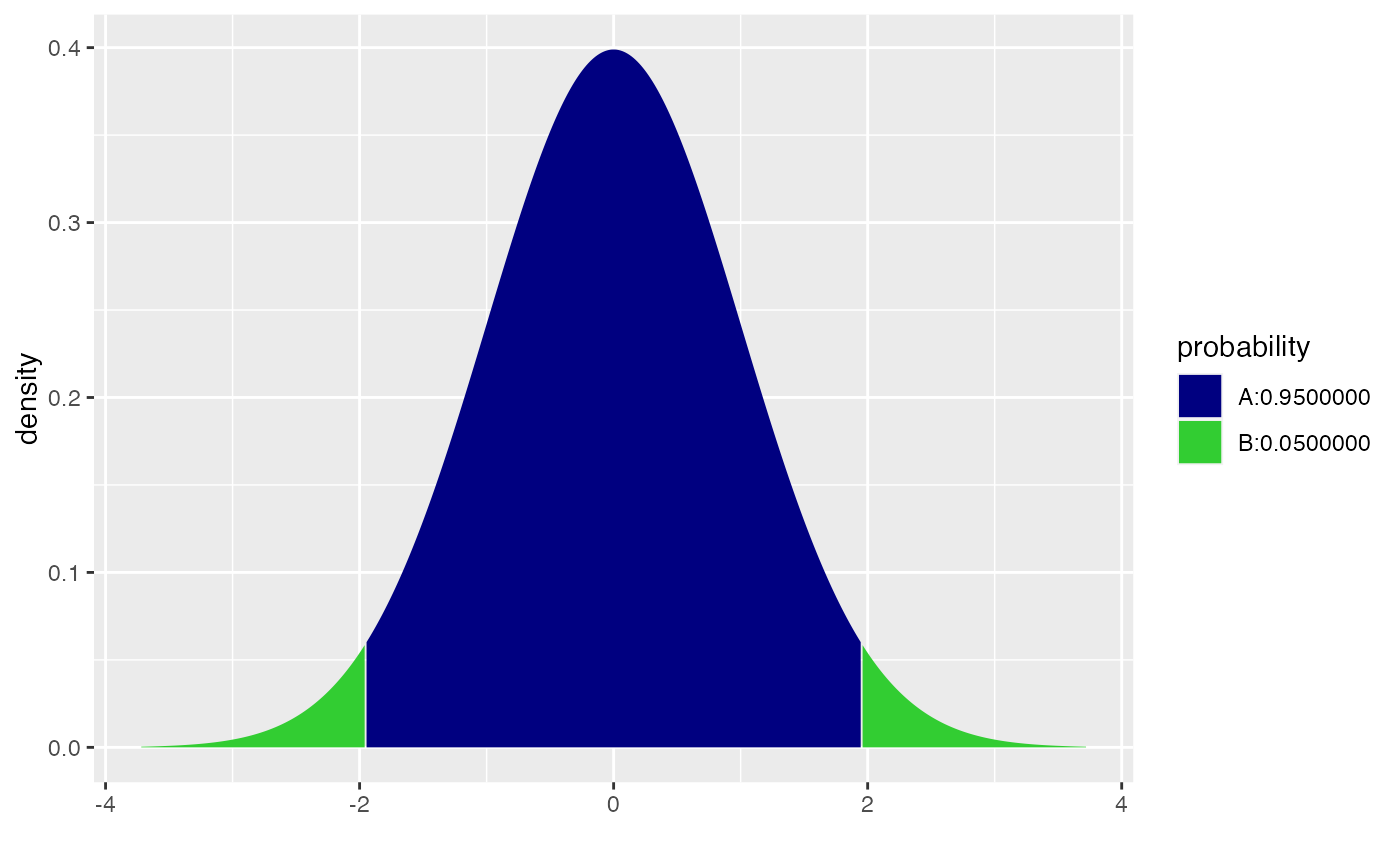 #> P(X > -1.959964) = 0.975 P(X > 1.959964) = 0.025