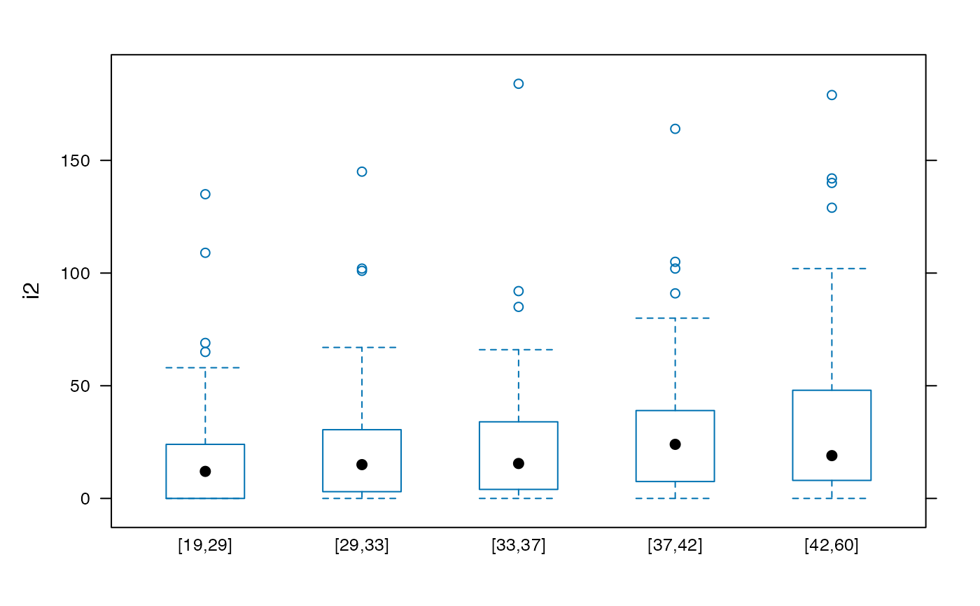 bwplot( i2 ~ ntiles(age, n=5, format="interval"), data=HELPrct)