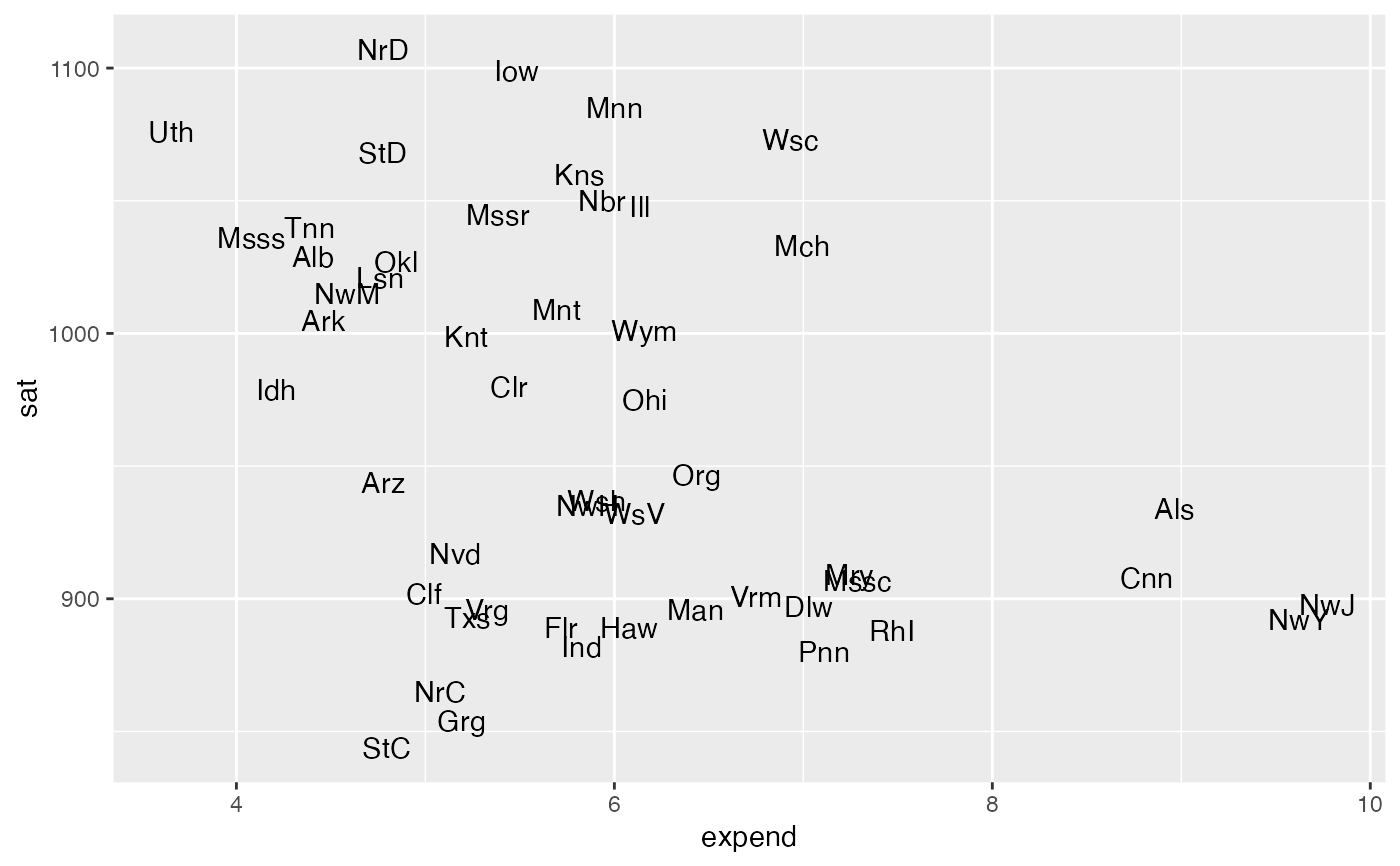SAT data assembled for a statistics education journal article on the link between SAT scores and measures of educational expenditures