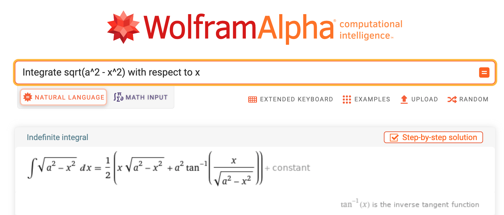 Calculus textbooks that include extensive coverage of the techniques and tricks should be understood as telling a story of the historical construction of catalogs, rather than conveying skills that are widely used today. In a practical sense, when the techniques are needed, it is more reliable to access them via computer interface such as WolframAlpha, as depicted in Figure fig-wolfram-alpha-125.