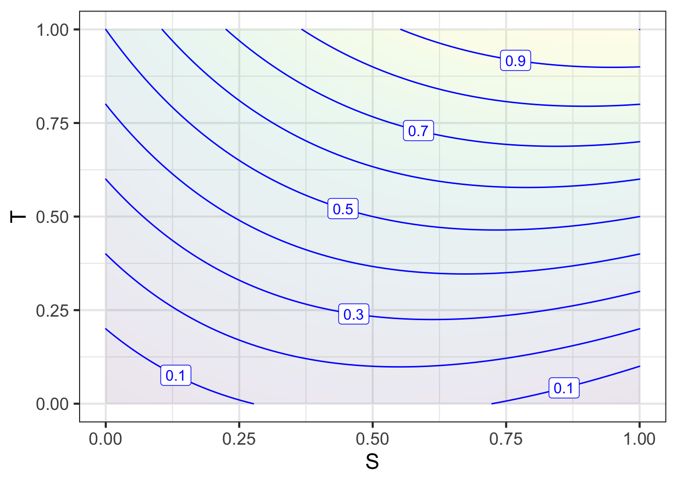 contour_plot(P(S, T) ~ S & T, bounds(S=0:1, T=0:1))