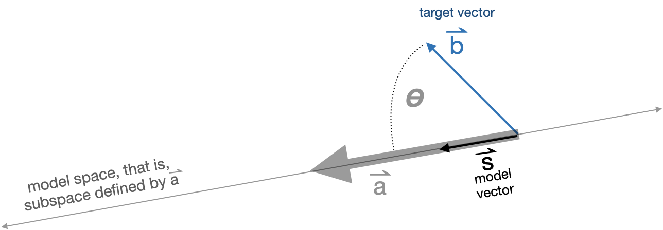 Figure fig-b-onto-a diagrams the situation of projecting the target vector \(\vec{b}\) onto the model space \(\vec{a}\).