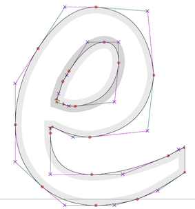 Algebraically, each Bézier segement is a pair of cubic functions, \(x(t)\) for the x-coordinate and \(y(t)\) for the y-coordinate. The input \(t\) varies between 0 and 1 for each segment. The coordinate pair \(\left({\large\strut} x(0), y(0)\right)\) is one endpoint of the curve, while \(\left({\large\strut} x(1), y(1)\right)\). Each intermediate value of \(t\) corresponds to a point on the interior of the curve.