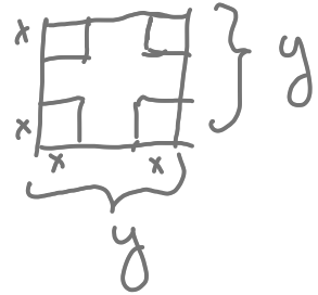 To illustrate, let’s returning to the mathematically simplified problem of constructing an optimal cardboard box. Before, we stipulated that the raw cardboard stock has dimension 20 inches by 30 inches. Now we will generalize and work with a piece of cardboard that has edges of length \(y\) from which, as before, we will cut out square corners of length \(x\) on a side. (See Figure fig-box-shape). Our objective is to make a box with the largest possible volume. (This will be an argmax problem.)