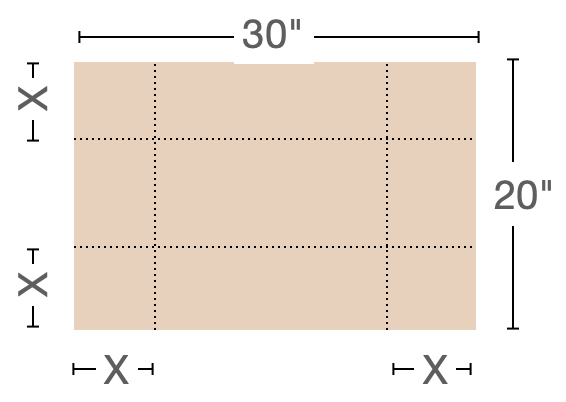 To illustrate, consider this simple but unrealistic problems found in hundreds of calculus texts: Finding the configuration to construct the rectangular box with the largest possible volume out of a piece of cardboard. The modeling phase starts with a representation of the box-construction and volume-finding process. Suppose, for the sake of simplicity, that we are working with a piece of cardboard fixed at 20 inches by 30 inches. For box construction, we will propose cutting out squares from each corner of the box of some side length \(x\). Those squares will be discarded and the box formed by folding up the flaps generated by the squares’ removal, as in Figure fig-box-folding.