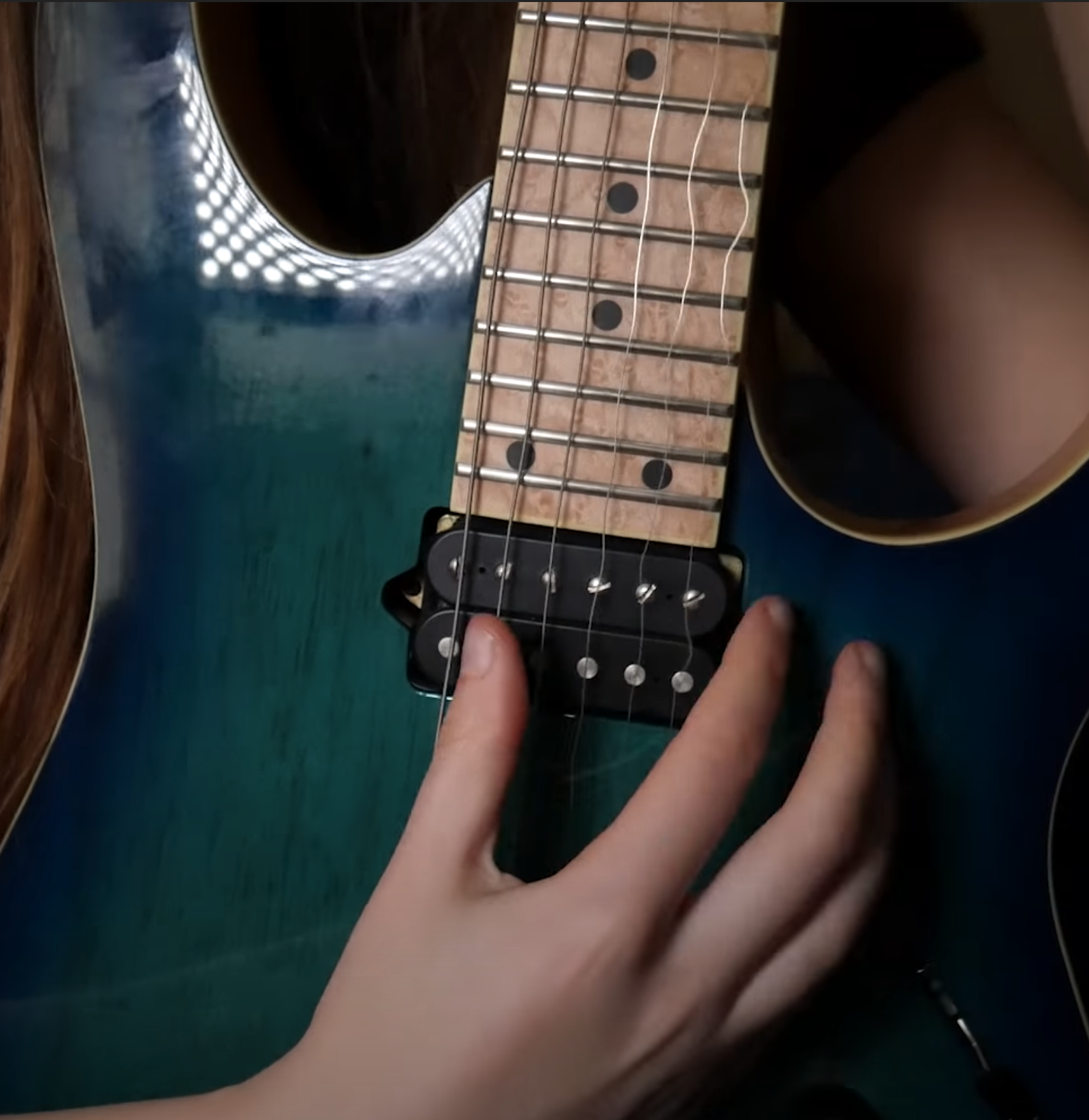 When a guitar string is at rest it forms a straight line connecting its two fixed ends: one set by finger pressure along the neck of the guitar and the other at the bridge near the center of the guitar body. When the string is plucked, its oscillations follow a sinusoid pattern of displacement. With the right camera and lighting setup, we can see these oscillations in action: