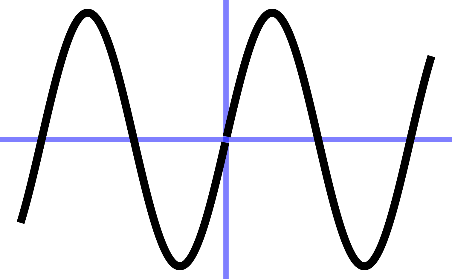 A sinusoid is a periodic function, meaning that the pattern repeats itself identically from left to right in the graph. It is also very smooth, both visually and in the mathematical sense to be introduced in sec-describing-functions