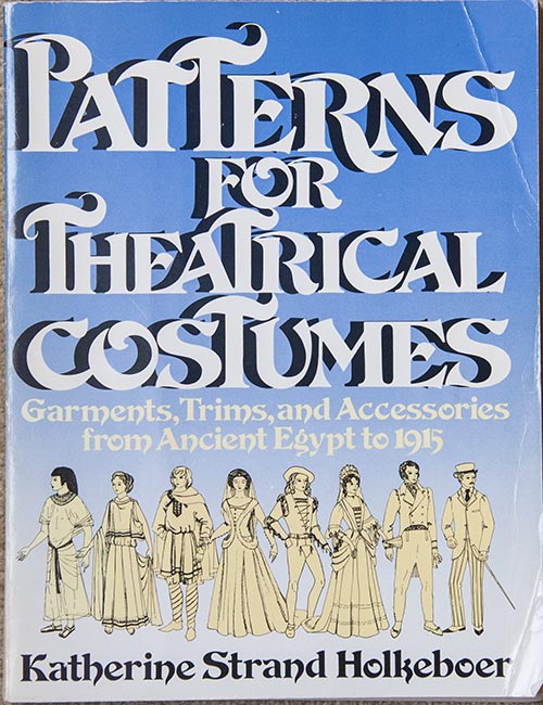 Costume designers use their imagination, often enhanced by referencing published collections of patterns and customizing them to the needs at hand. These references are sometimes called “pattern books,” an example of which is shown to the right. Each page of the book gives the pattern and instructions for constructing a particular type of costume.