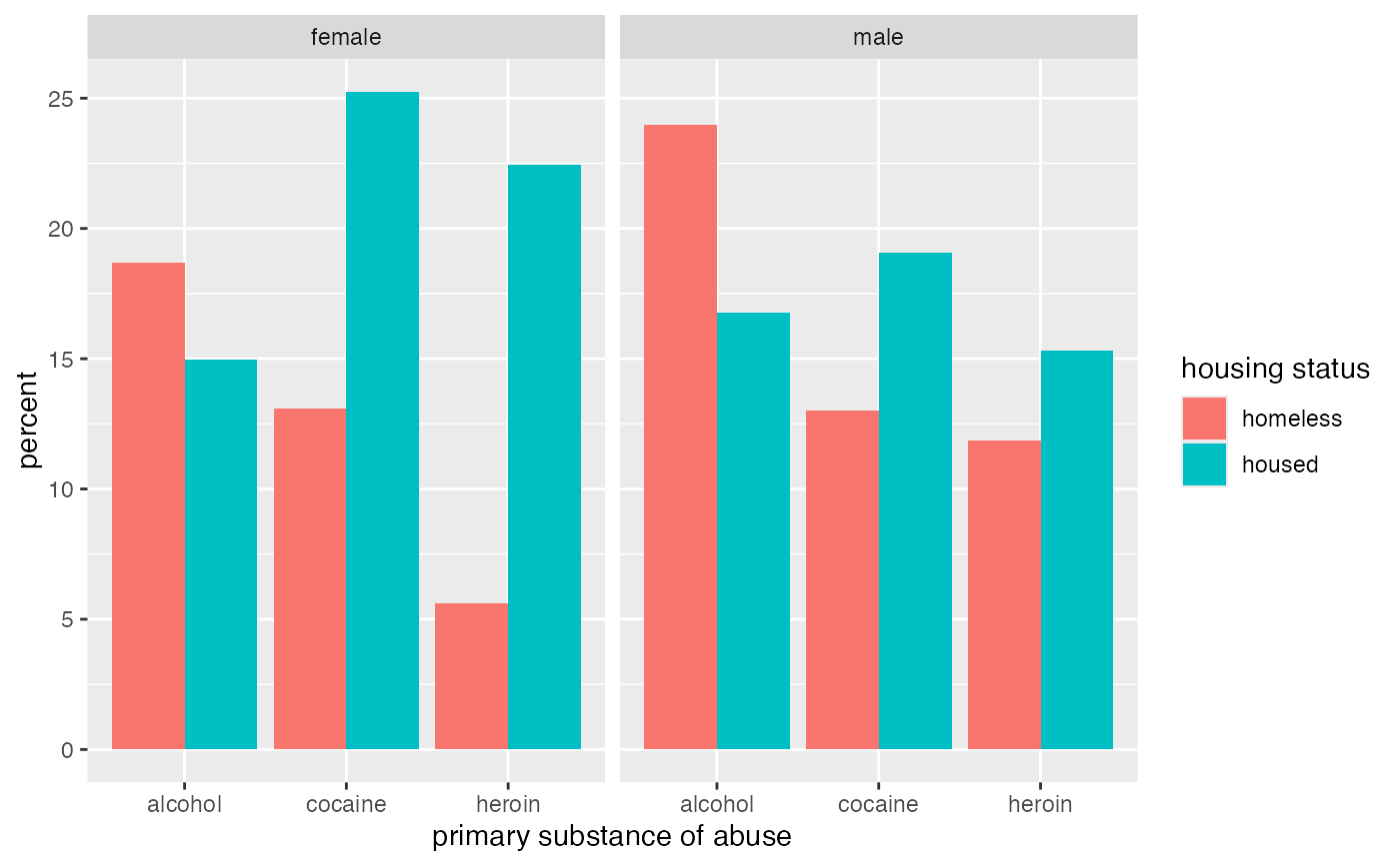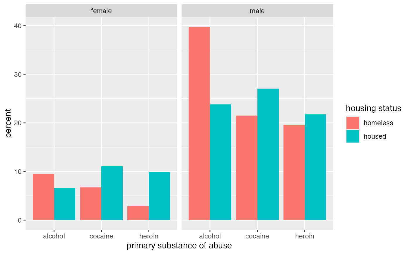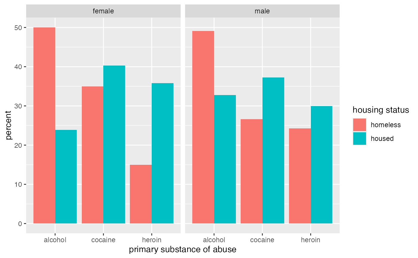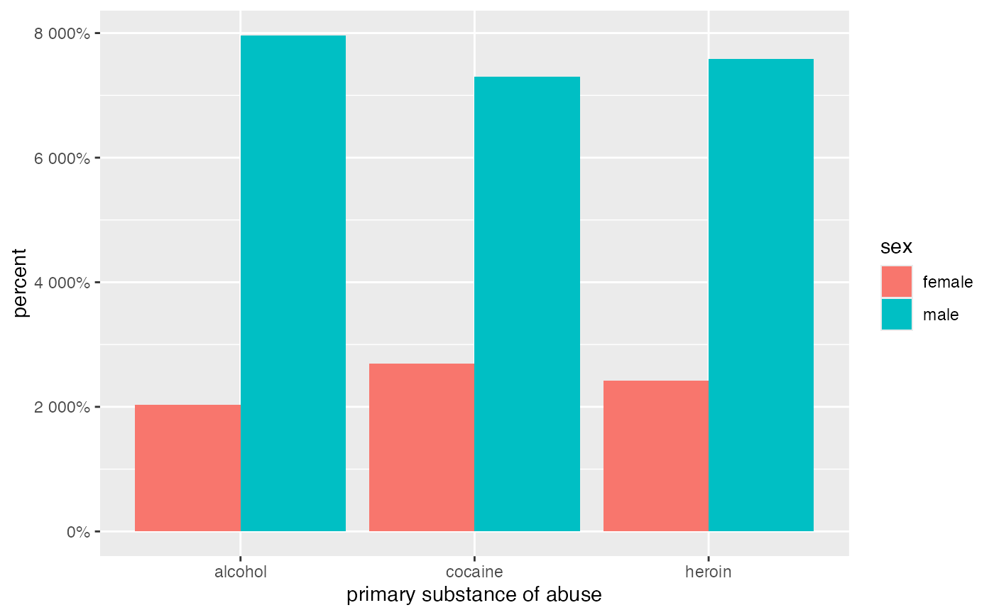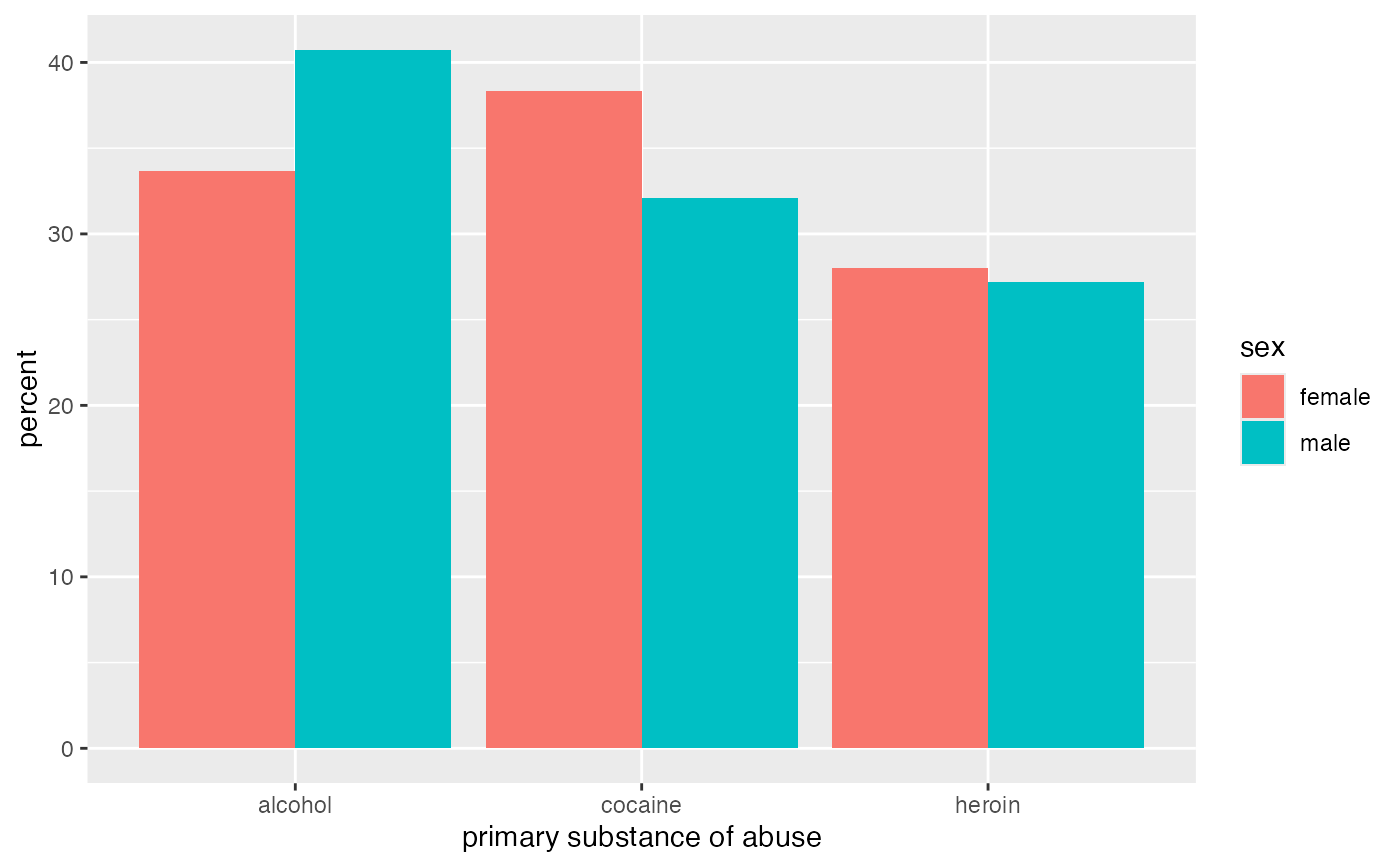 gf_bar(~substance, data = mosaicData::HELPrct, fill = ~sex)