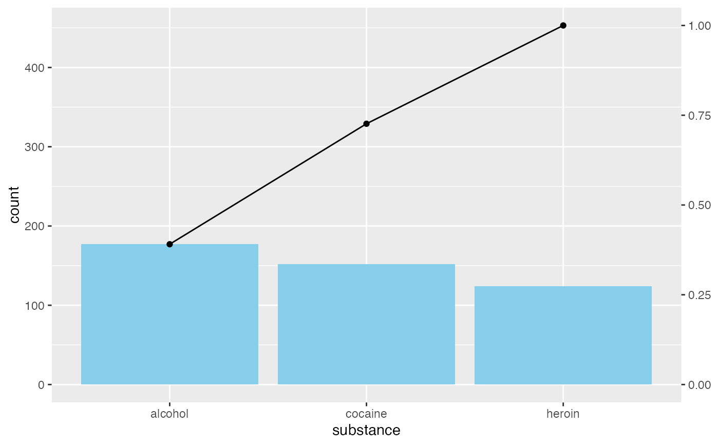 scale_y_continuous(sec.axis = sec_axis(~ . / nrow(HELPrct)))