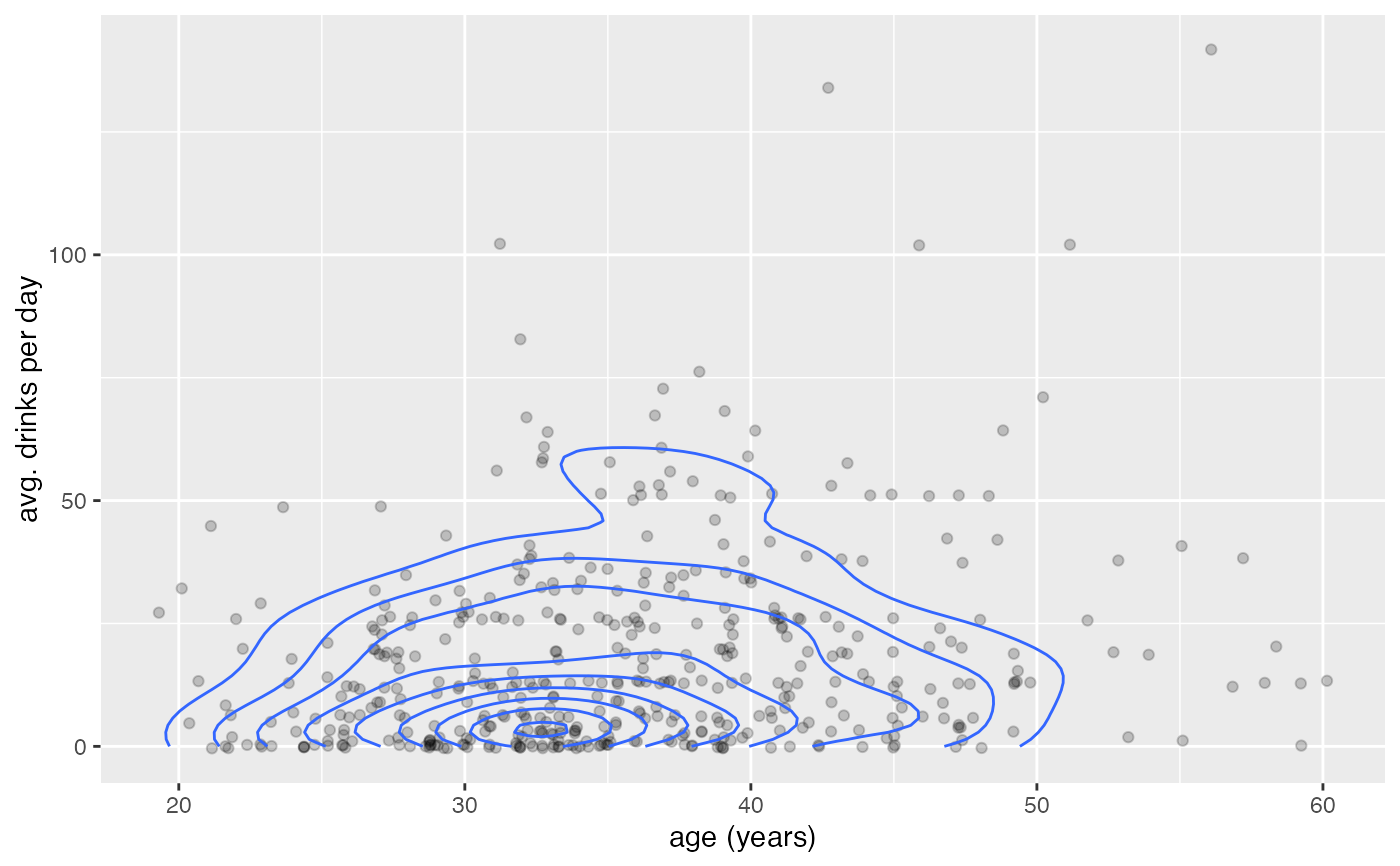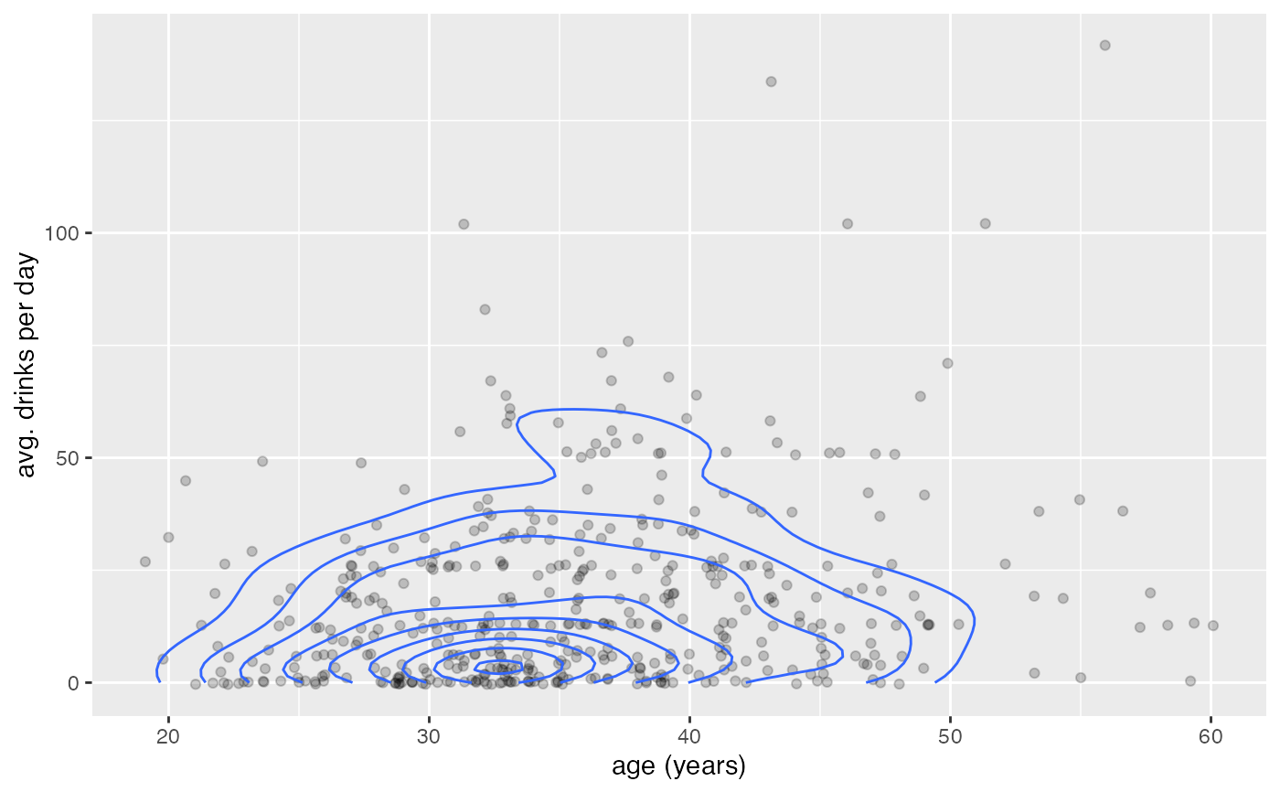 gf_density2d(avg_drinks ~ age, data = mosaicData::HELPrct)