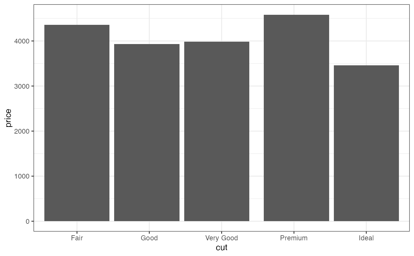 gf_col(price ~ cut, data = diamonds, stat = "summary_bin", fun.y = "mean")