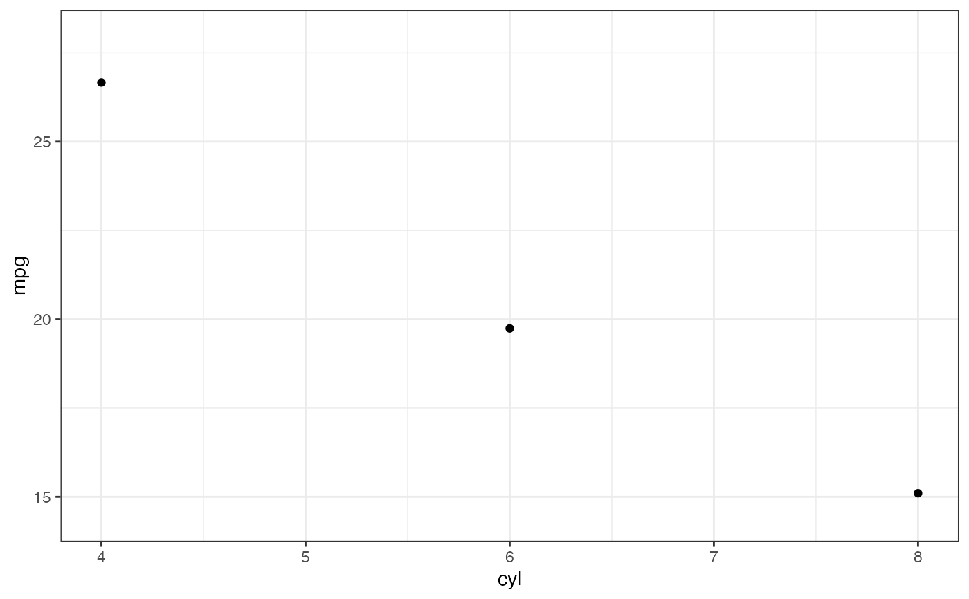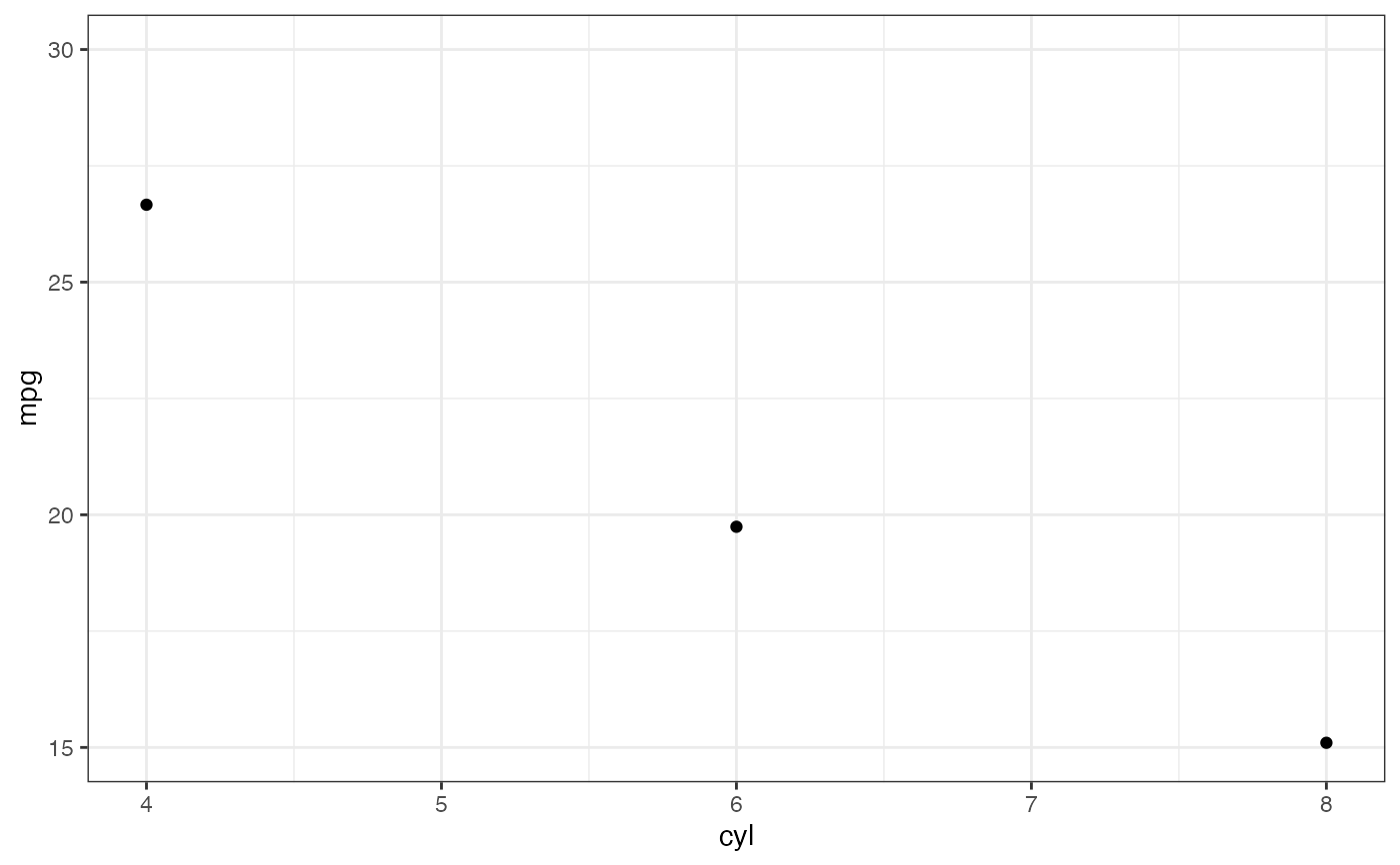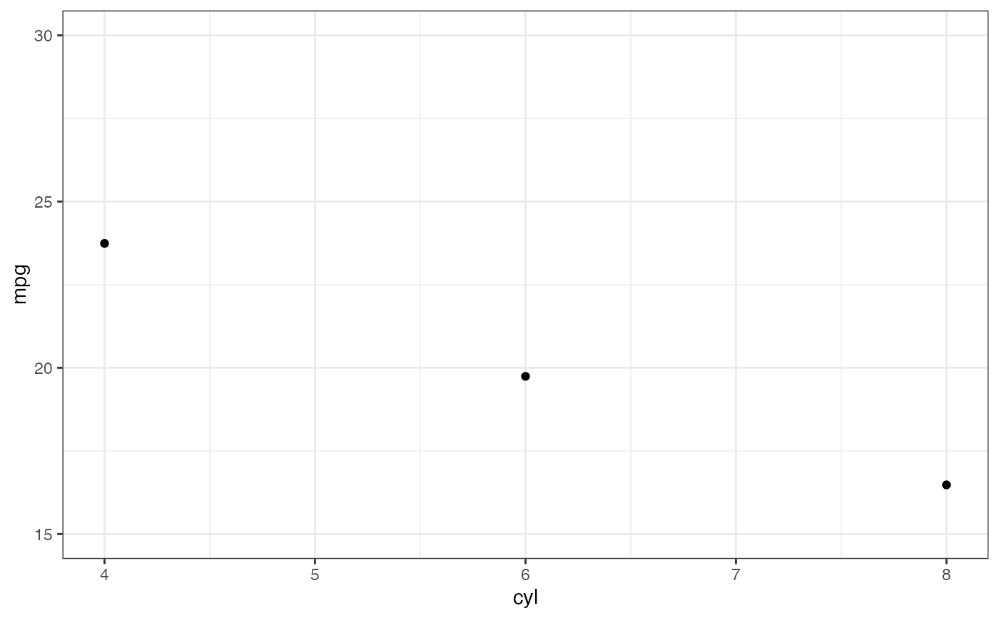 p <- gf_summary(mpg ~ cyl, data = mtcars, fun.y = "mean", geom = "point")