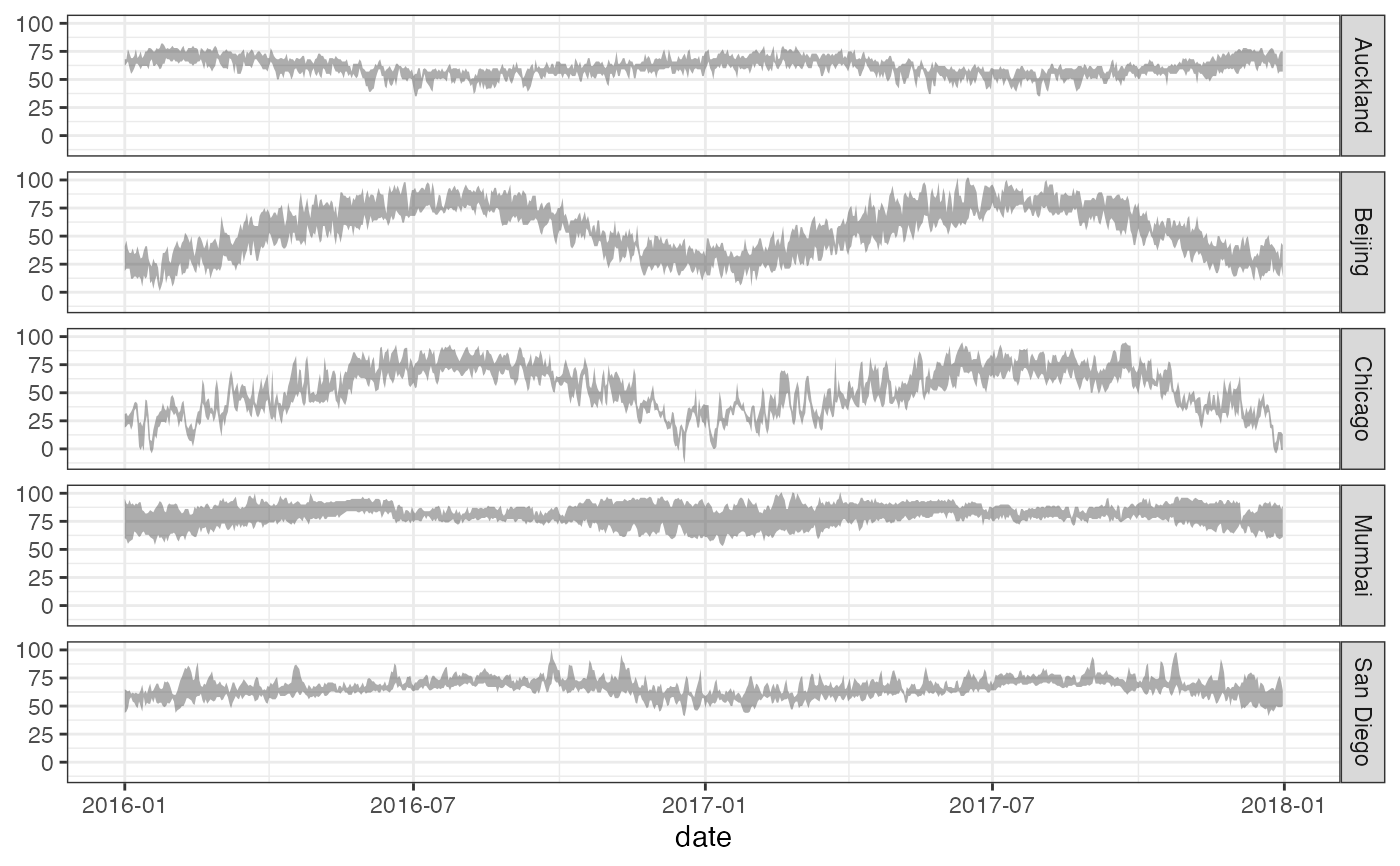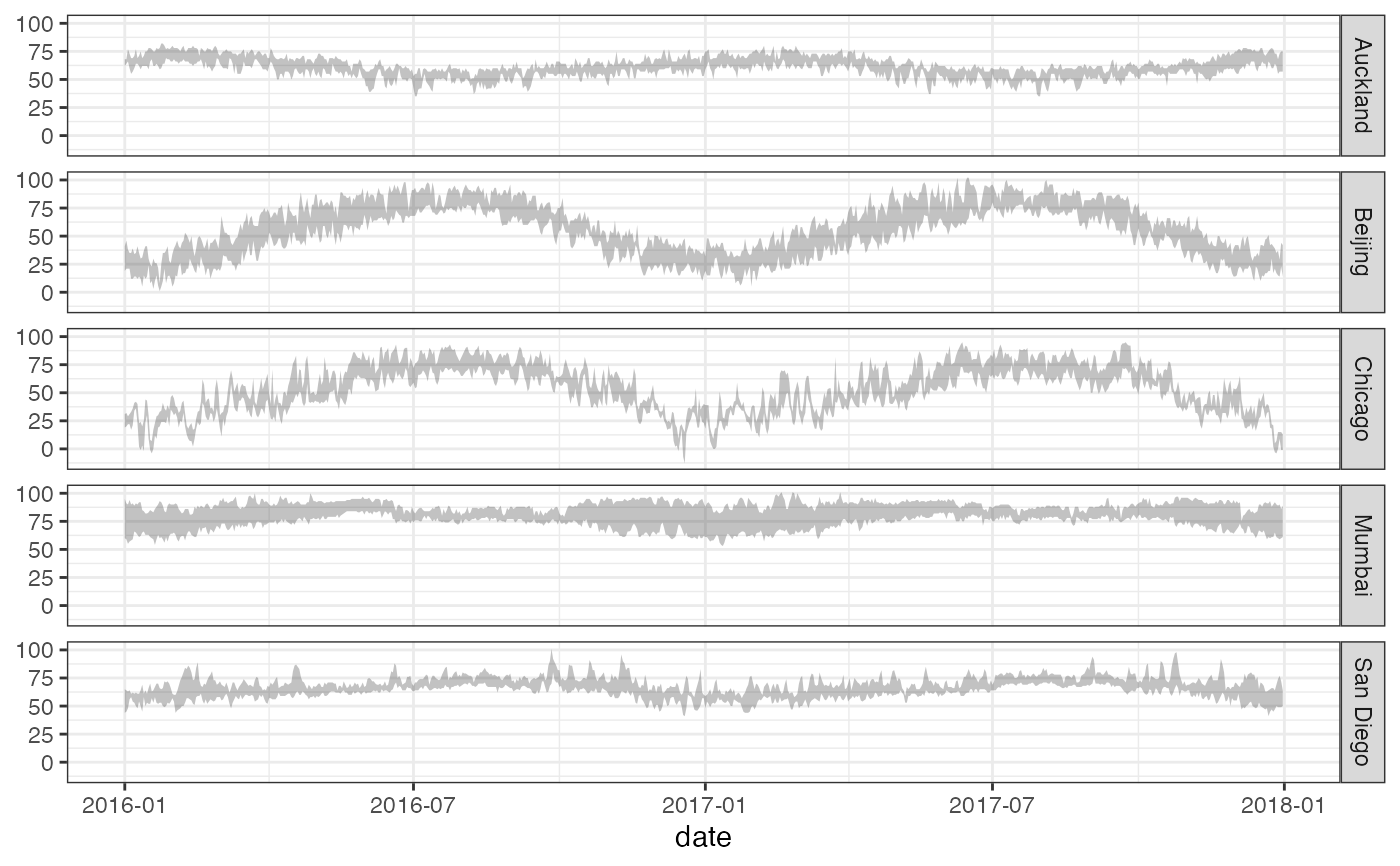 gf_ribbon(low_temp + high_temp ~ date | city ~ ., data = mosaicData::Weather)