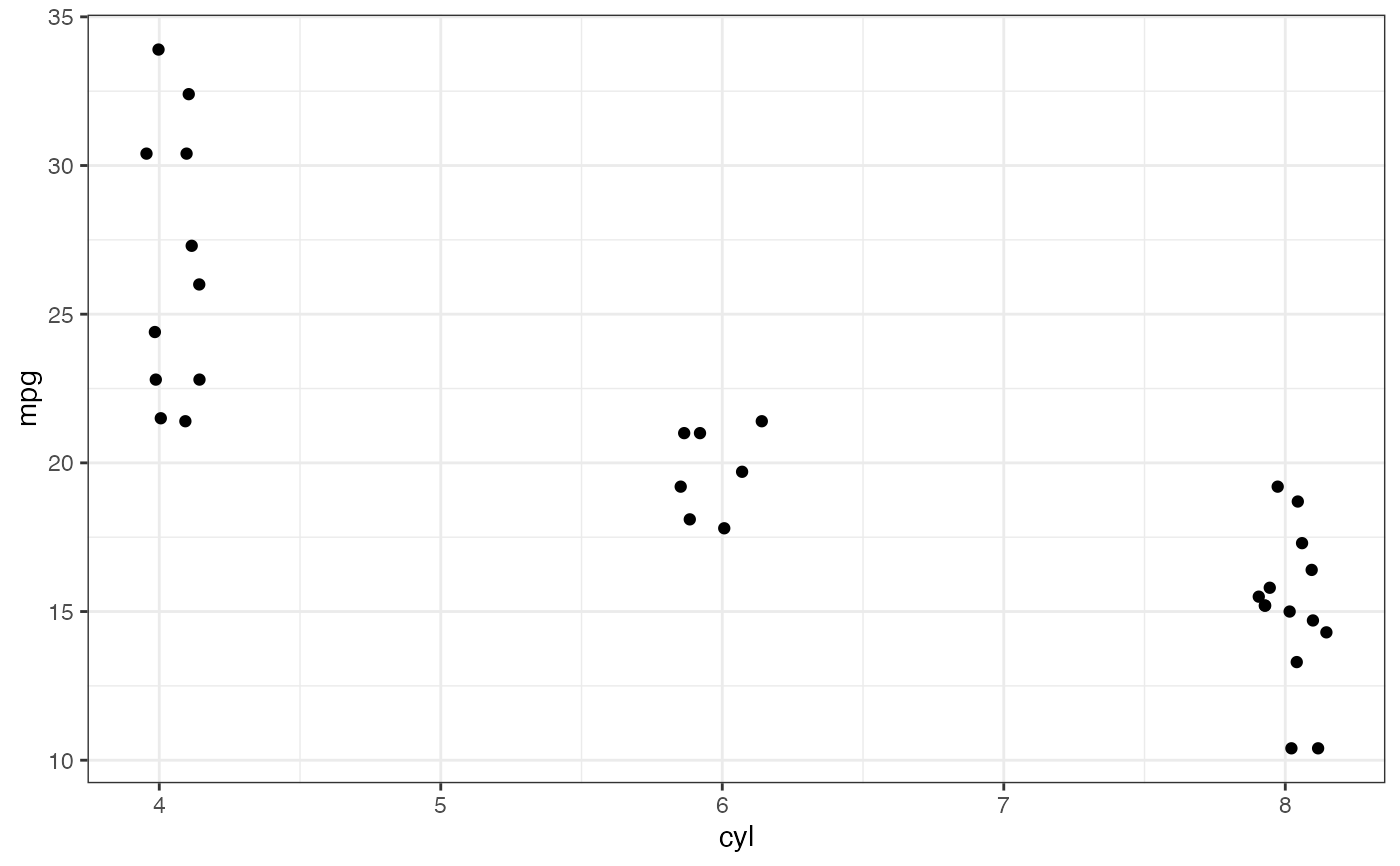 p <- gf_jitter(mpg ~ cyl, data = mtcars, width = 0.15, height = 0); p