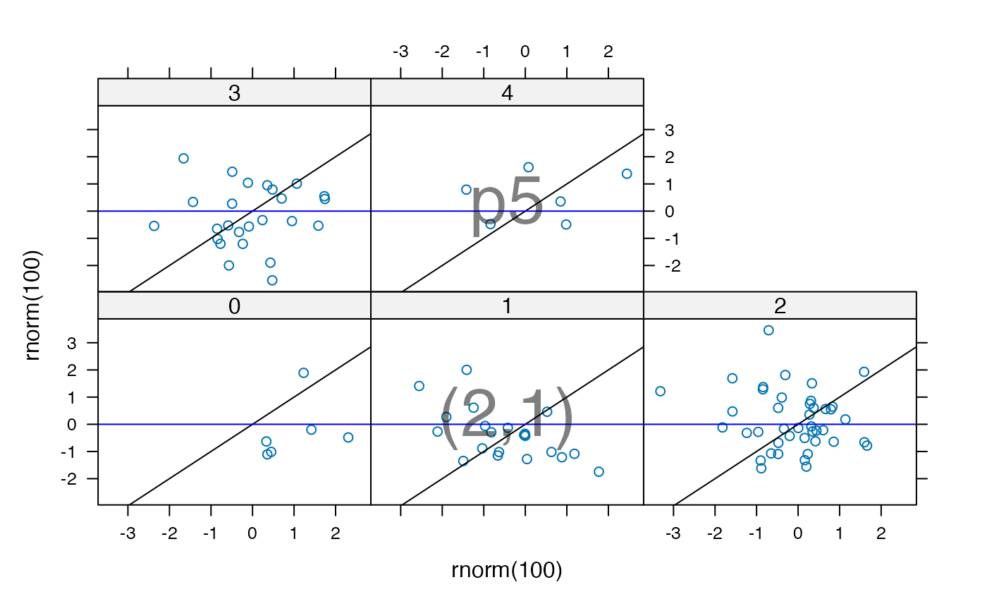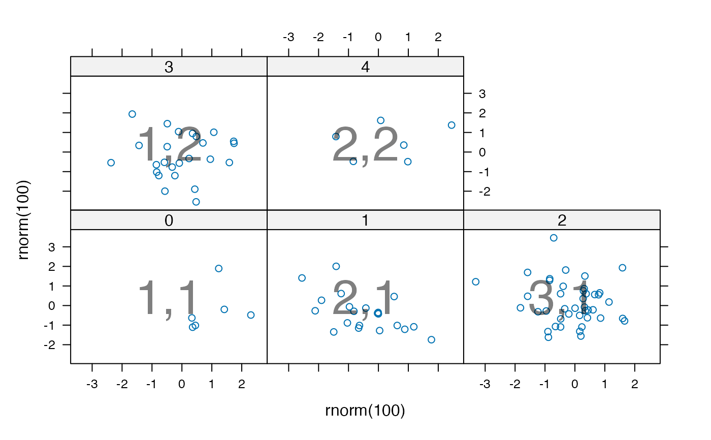 q <- xyplot(rnorm(100) ~rnorm(100)|factor(rbinom(100,4,.5)))