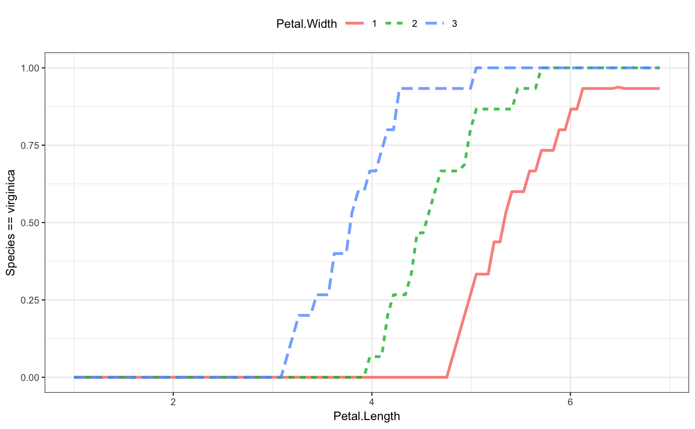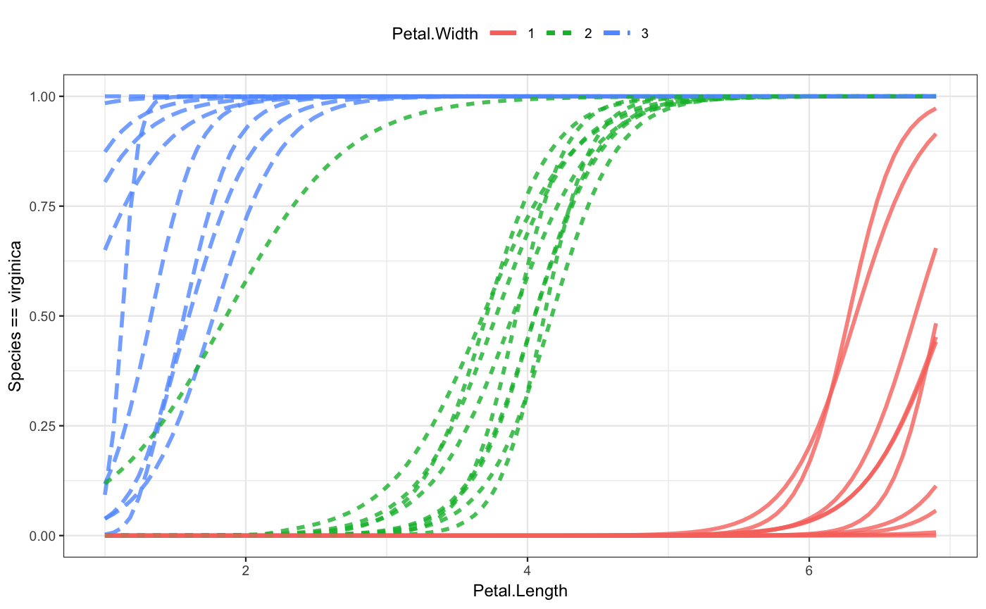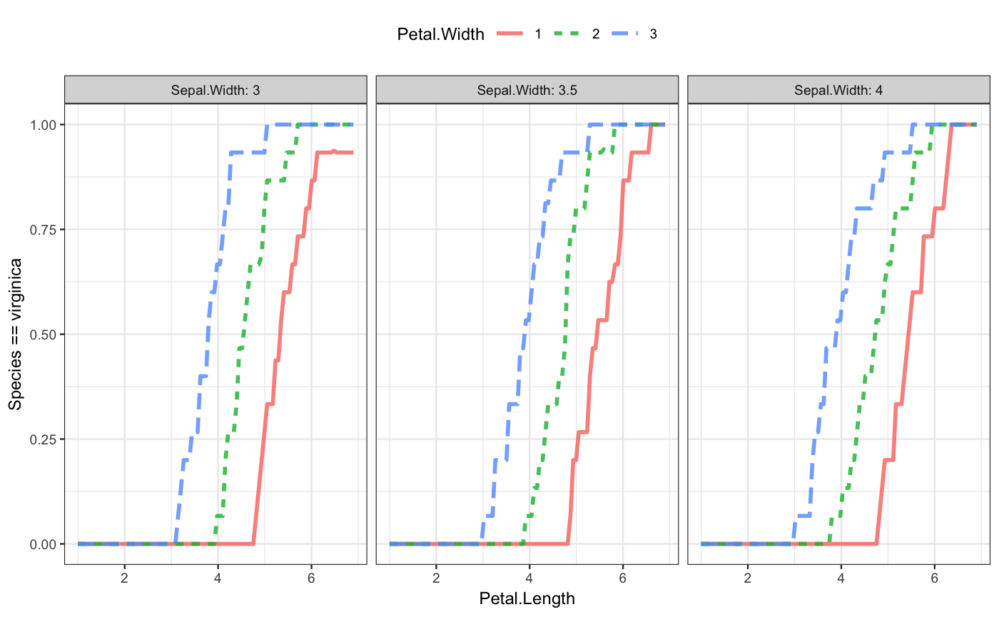 The second iris model has four explanatory variables. This is as many as mod_plot() will display: